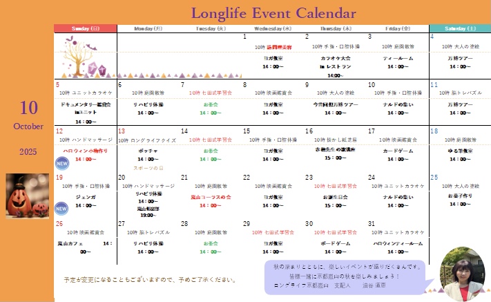 10月のイベントカレンダーが完成しました✨