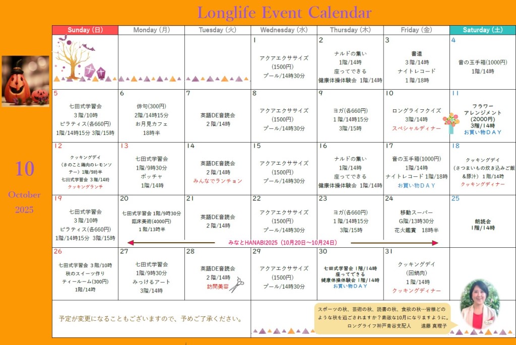 10月のロングライフ神戸青谷は、秋の夜長と味覚を楽しむイベントが盛りだくさん!✨