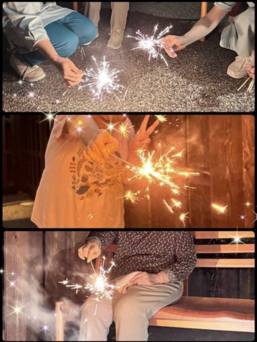 線香花火を見て「懐かしいね」とお話しされたり、スタッフも「花火なんて久しぶり!」と一緒に童心に返って楽しんだりと、笑顔があふれる時間となりました😌✨