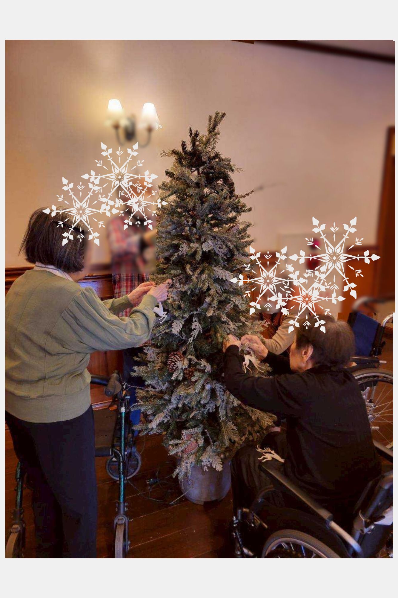 エントランスには華やかなクリスマスツリーを設置し、赤や金のオーナメント、リボン、やわらかな光のライトなどを、皆さまと一緒に飾り付けました。