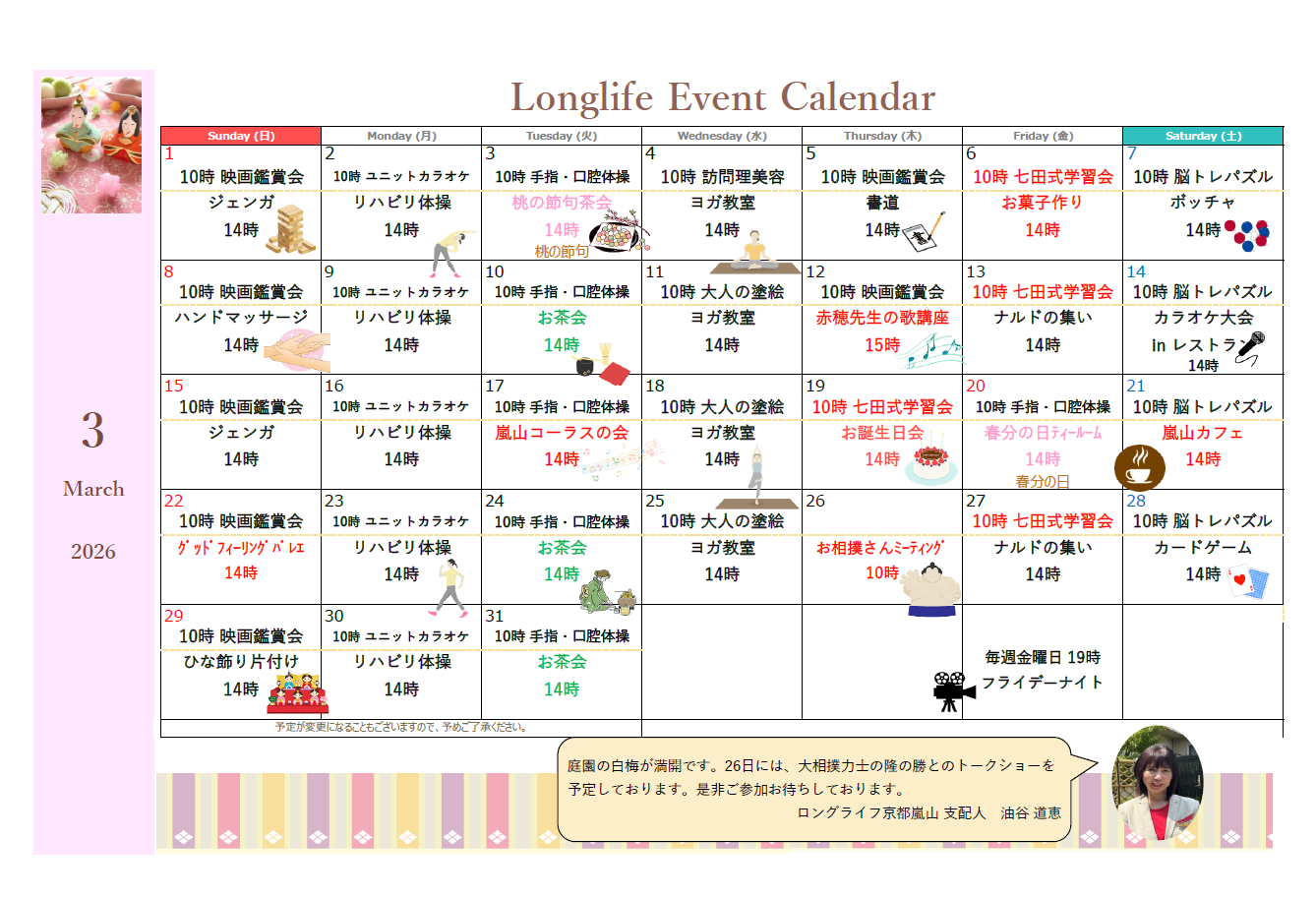 3月のイベントカレンダーが完成しました✨
