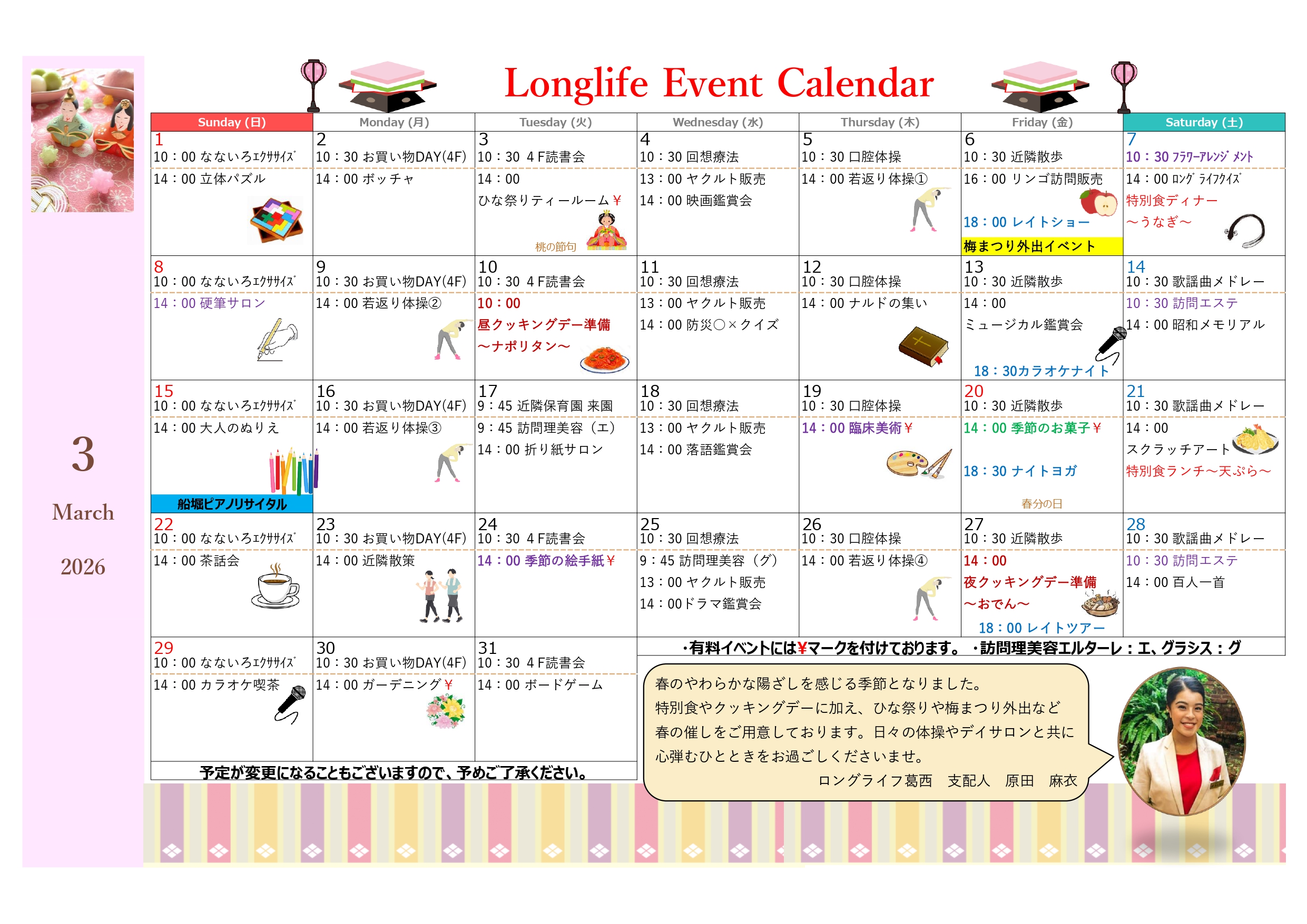 【ロングライフ葛西】3月イベントカレンダーのご紹介🌸