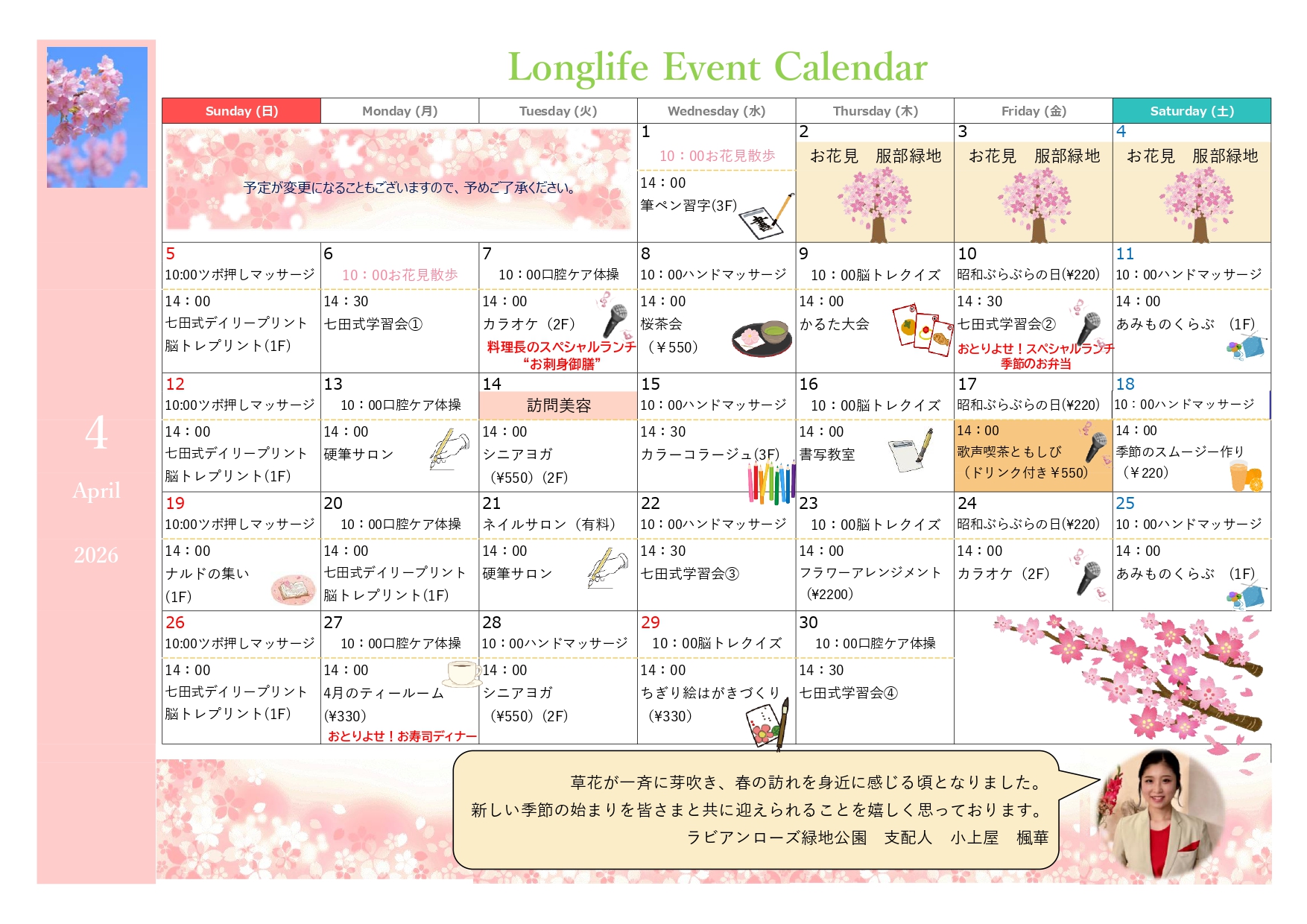 豊中市の介護付有料老人ホーム、ラビアンローズ緑地公園で、ご生活されているお客様との交流や、雰囲気を感じていただける見学は、14:00がおすすめ!その他詳細については、イベントカレンダーをご覧ください🗓️