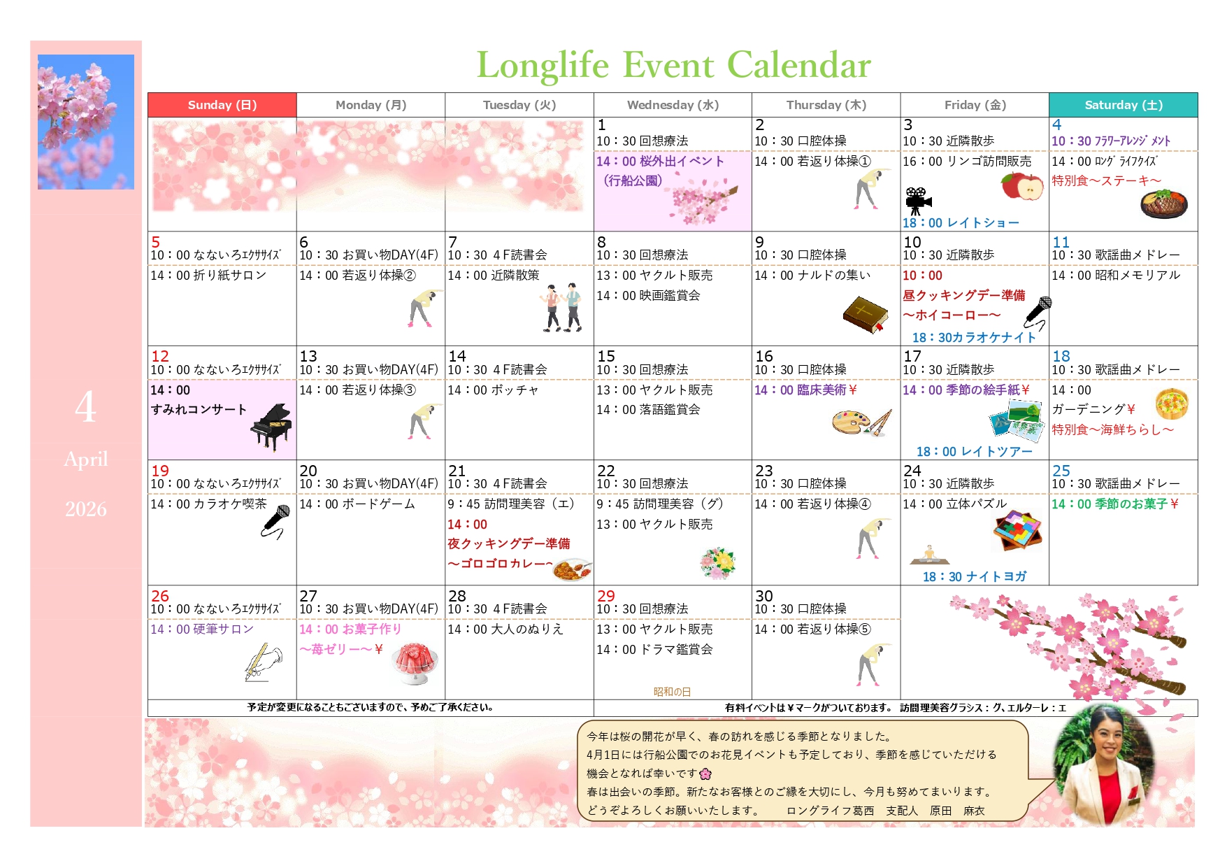 【4月のイベントカレンダー】心華やぐイベントをご用意🌸