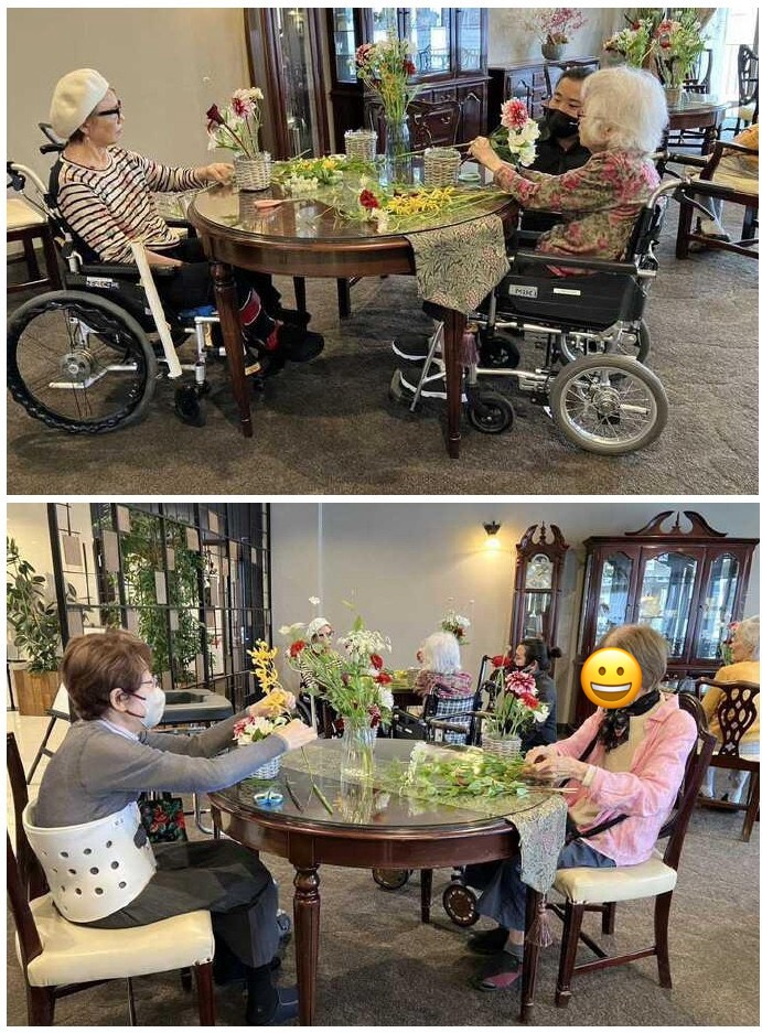 静岡市葵区にある有料老人ホーム「ロングライフクイーンズ静岡呉服町」では、先日ご入居者様6名にご参加いただき、フラワーアレンジメントのひとときを楽しみました🌸✨