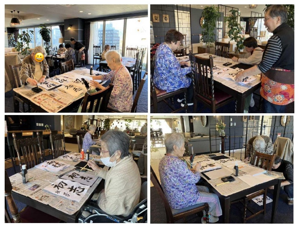 当ホームでは、昨日新年のイベントとして、お住まいのお客様とご一緒に書初めを行いました🖌️