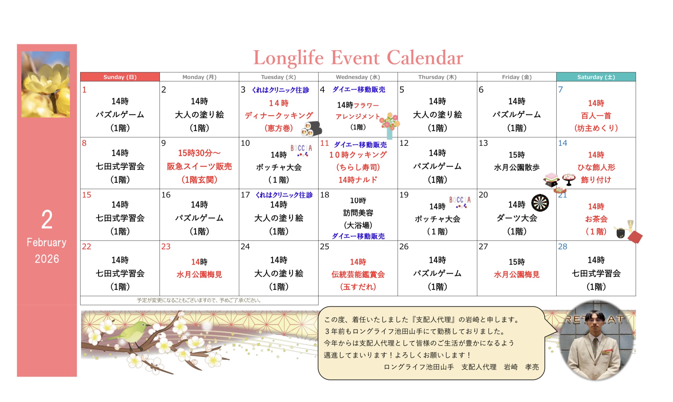 2月のイベントカレンダーが完成しました✨