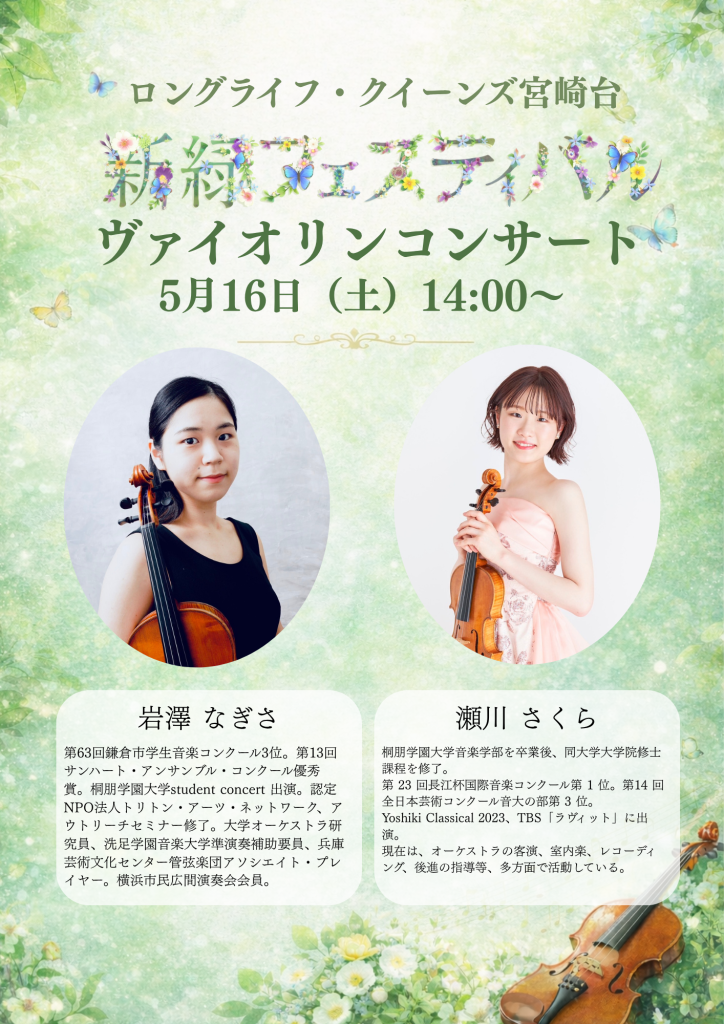 そして、14:00からはヴァイオリンコンサートを開催いたします!