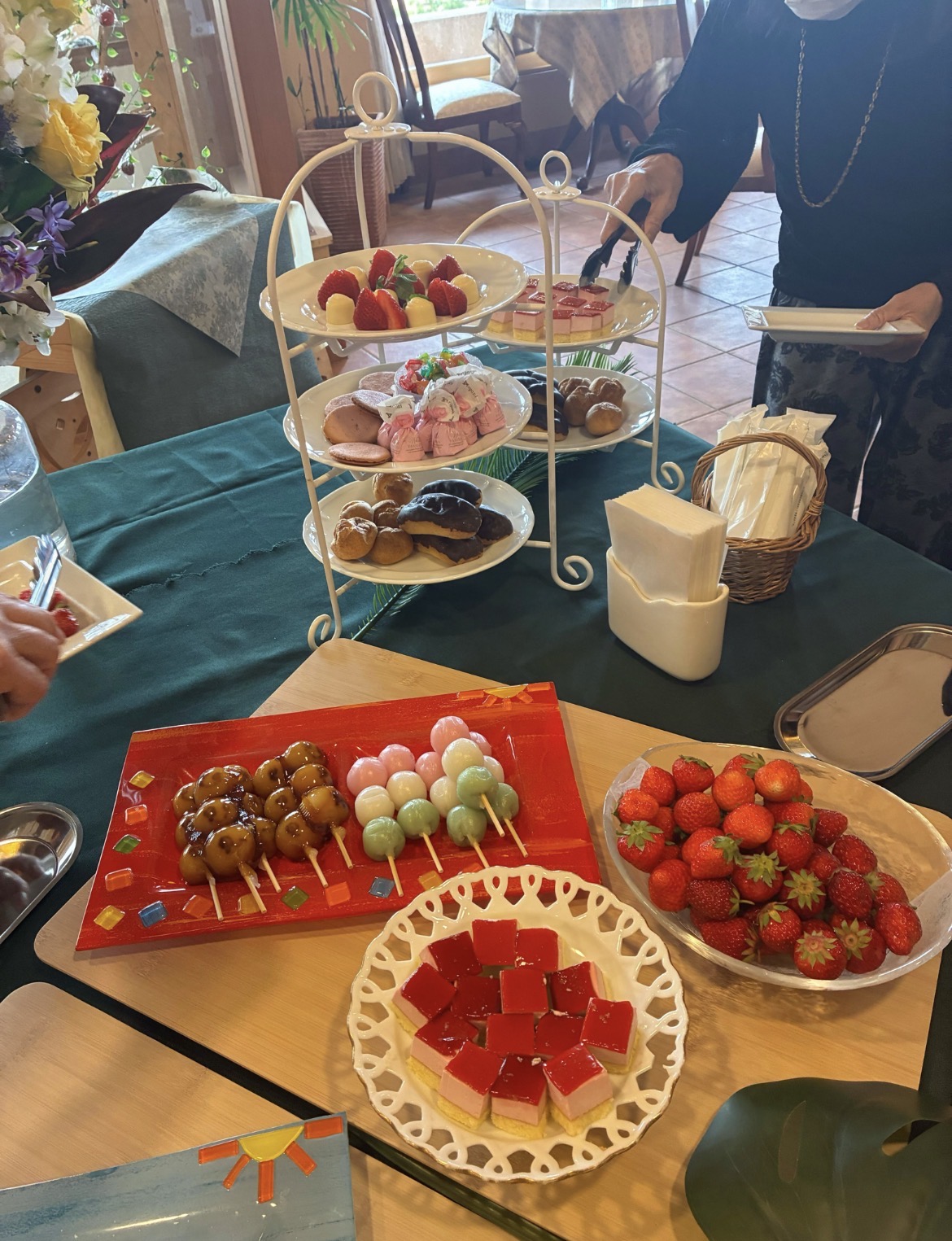 お好きなスイーツを選びながら、皆様思い思いのティータイムを楽しまれていました。和やかな会話が弾む会場は、春らしい温かな活気に包まれ、当ホームの明るい雰囲気を感じ取っていただける素敵な時間となりました💖