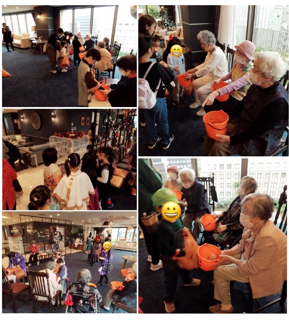 当日は、かわいらしい仮装をした子どもたちがホームを訪れ、ホームのお客様が交代でイベントに参加のお子様にお菓子を手渡しました🍬