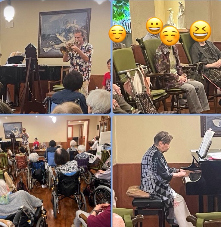 このたび、その先生のご縁で、ハワイ在住のピアニストとトランペット奏者がロングライフ高槻を訪問してくださいました✨