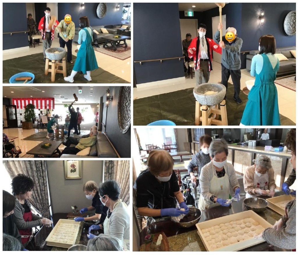 昨日、当ホームでは毎年恒例となっている年末のお餅つきを開催いたしました。