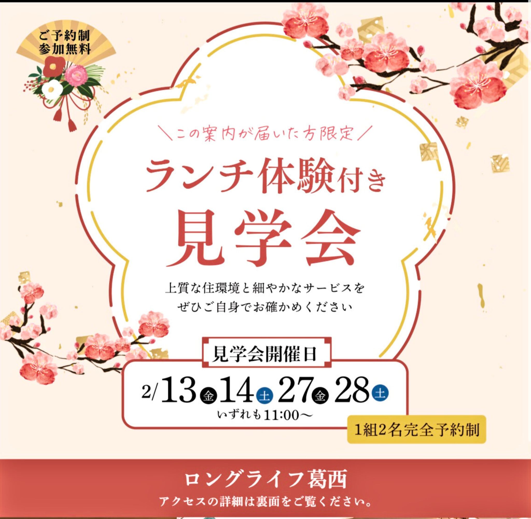 2月にロングライフ葛西にて、「ランチ体験付き見学会」を開催させていただきます。