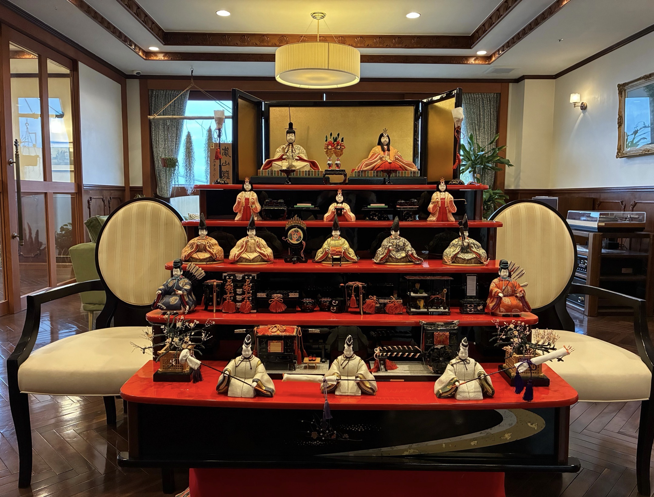 暦の上では春を迎え、当ホームのエントランスにも、皆様の目を楽しませてくれる立派な「七段飾り」の雛人形が登場いたしました✨
