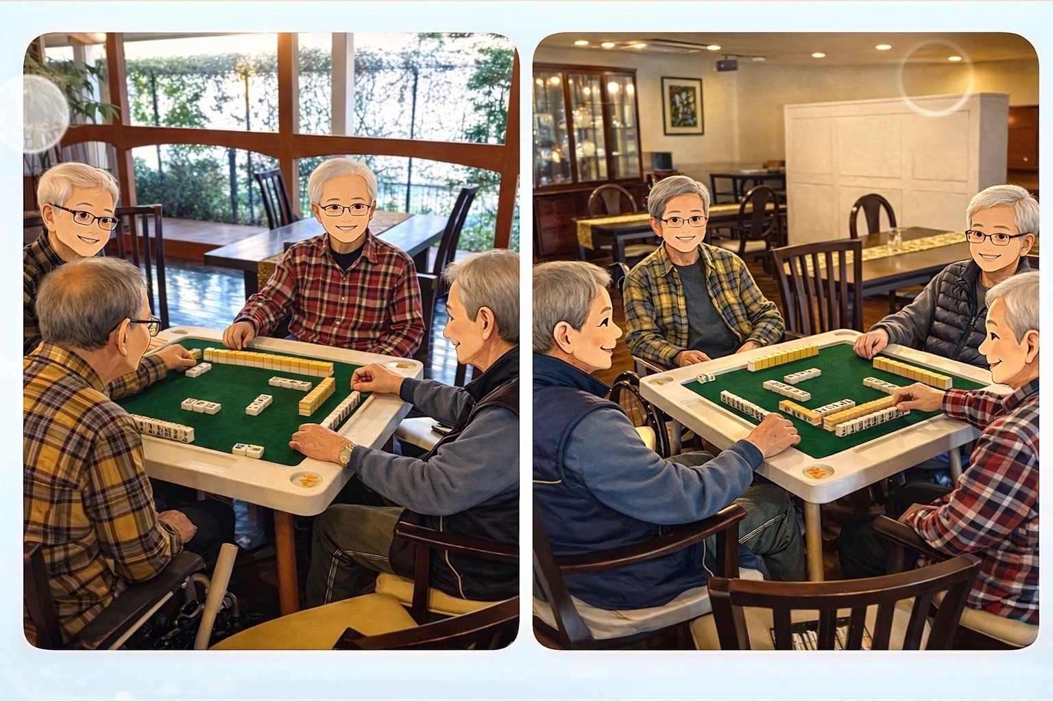 毎回メンバーを入れ替えながら、和やかな雰囲気の中で対局を楽しまれています。真剣に牌を並べる場面もあれば、「いい手ですね」と声を掛け合うなど、自然と会話が生まれるのもこの時間ならではの魅力です。
