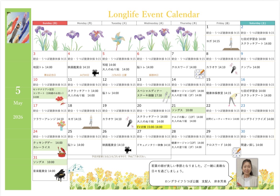 若葉の緑が目にまぶしい、爽やかな季節となりました✨ 5月のカレンダーより、皆様の笑顔あふれる2つの特別なイベントをご紹介いたします。