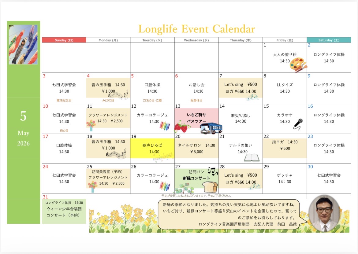 新緑が目にまぶしく、爽やかな風が吹き抜ける心地よい季節となりました✨ 5月のカレンダーより、皆様にお楽しみいただく2つの特別なイベントをご紹介いたします。